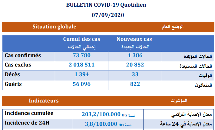 “كوفيد-19” في المغرب: تسجيل 1386 إصابة جديدة و33 حالة وفاة مع 822 حالة شفاء خلال الـ24 ساعة الماضية