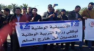 وتنفيذا لقرار المجلس الوطني للتنسيقية الوطنية لموظفي وزارة التربية الوطنية المقصيين من خارج السلم المتضمن في بيانه الصادر بتاريخ 31 أكتوبر 2022 الداعي إلى خوض إضراب وطني أيام 15 و16 و17 نونبر 2022 مصحوب بوقفة احتجاجية ممركزة وتنفيذ مسيرة احتجاجية وطنية يوم الخميس 17 نونبر 2022، من أجل التأكيد على تشبت المقصيين بمطالبهم العادلة والمشروعة، والتعبير عن رفضهم لكل مناورات تكريس وإطالة امد الإقصاء، والاحتجاج على منطق الاستهتار والازدراء واللامبالاة المنتهج من طرف الوزارة والحكومة تجاه مطالب أوسع شريحة تعليمية.