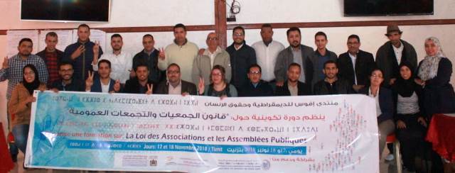 نظم منتدى إفوس للديمقراطية وحقوق الانسان دورة تكوينية حول قانون الجمعيات والتجمعات العمومية يومي السبت 17 والأحد نونبر18 2018 بتزنيت، وذلك في إطار مشروع "ترافع" لتفعيل التدابير المتعلقة بالخطة الوطنية في مجال الحكامة والديمقراطية بأقاليم جهة سوس ماسة.