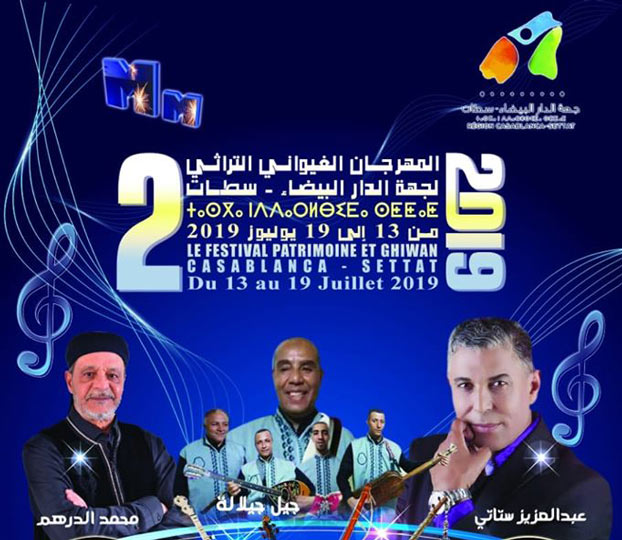 تستعد مساء السبت المقبل جهة الدار البيضاء سطات، لفعاليات الدورة الثانية للمهرجان الغيواني التراثي والتي ستتواصل إلى غاية 19 يوليوز الجاري بخمس مدن هي البيضاء وأزمور وبرشيد ومديونة وابن سليمان.