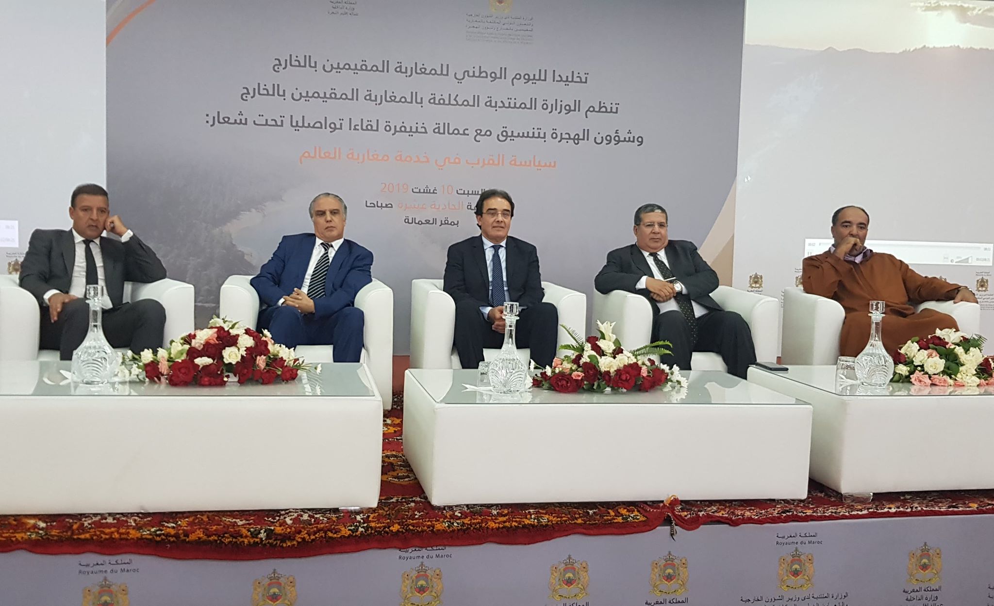 ترأس السيد عبد الكريم بنعتيق الوزير المنتدب المكلف بالمغاربة المقيمين بالخارج وشؤون الهجرة لقاءا تواصليا بعمالة إقليم خنيفرة بمناسبة الإحتفال باليوم الوطني للمهاجر و الذي يصادف يوم 10 غشت من كل سنة تحت شعار " سياسة القرب في خدمة مغاربة العالم"، هذا اللقاء تميز بحضور عامل إقليم خنيفرة و ممثل السيد والي جهة بني ملال خنيفرة عامل إقليم خريبكة المنتخبين المحليين و المصالح الخارجية،و ممثل المحافظة العقارية و ممثلة وزارة العدل و ممثل إدارة الجمارك و ممثلة المركز الجهوي للإستثمار ببني ملال. و معلوم أنه منذ إقرار اليوم الوطني للمهاجر سنة 2003 من طرف صاحب الجلالة الملك محمد السادس نصره الله، دأبت الوزارة المنتدبة المكلفة بالمغاربة المقيمين بالخارج وشؤون الهجرة على الاحتفال بهذا اليوم الذي يشكل مناسبة لاستحضار ما تحقق في هذا المجال من مكاسب خلال السنوات الأخيرة، وإشارة واضحة للاهتمام الذي يوليه المغرب لأبنائه بالخارج، ومناسبة أيضا لتعزيز الأواصر معهم واستشراف الآفاق المستقبلية الخاصة بهم. و قد أكد السيد عبد الكريم بنعتيق في كلمته بهذه المناسبة على الدلالة التي تم إختيار فيها لمدينة خنيفرة و الحمولة التاريخية لهذه المنطقة، كما دعا مغاربة العالم الحاضرين إلى الإنخراط في المشروع التنموي الذي يقوده جلالة الملك محمد السادس و الذي تحقق منه الكثير من المنجزات جعلت المغرب ينافس الدول المتقدمة في العديد من المجالات. وقد شكل هذا اللقاء حدثا متميزا ومناسبة استثنائية من أجل التواصل مع مغاربة العالم خلال مقامهم الصيفي بأرض الوطن. كما شكل هذا اليوم فرصة لتعبئة مغاربة العالم والوقوف على أهمية الأدوار التي يضطلعون بها لفائدة بلدهم الأم المغرب، و تسليط الضوء على السياسات العمومية والبرامج القطاعية الهادفة لتعزيز سياسة القرب لفائدة المغاربة المقيمين بالخارج ؛ و رصد التحديات الميدانية الي تواجه مغاربة العالم فيما يتعلق بتقريب الخدمات منهم ؛ بالإضافة منح مغاربة العالم فرصة من التعبير عن انشغالاتهم وتطلعاتهم حول سياسة القرب الموجهة إليهم وإبداء آرائهم واقتراحاتهم .