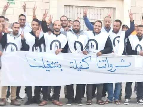 الداخلة : وقفة إحتجاجية للتنسيقية العهد للمعطلين الصحراويين حملة الشواهد العليا أمام معامل شركة كينگ بيلاجيك