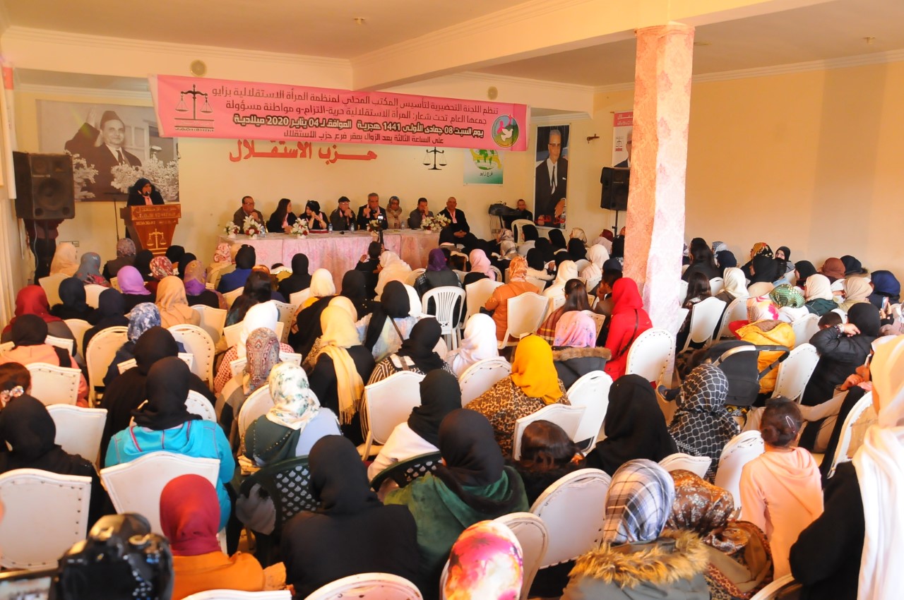 انعقد المؤتمر التأسيسي لمنظمة المرأة الاستقلالية يوم السبت 04 يناير 2020 بمدينة زايو، برأسة الأستاذة مونية فتحي عضو بالمكتب التنفيدي لمنظمة المرأة الاستقلالية ومنسقة الجهة، وبحضور كل من المفتش الإقليمي السيد الحاج السوداني والسيد محمد الطيبي عضو اللجنة المركزية لحزب الاستقلال ، والسيد أحمد بزعين الكاتب المحلي لحزب الاستقلال بزايو و السيد يونس شوعة عضو المكتب التنفيذي لمنظمة الشبيبة الاستقلالية، بالإضافة إلى الحضور الوازن للمرأة الاستقلالية بزايو حيث غصت بهن قاعة الحزب و الأجنحة.