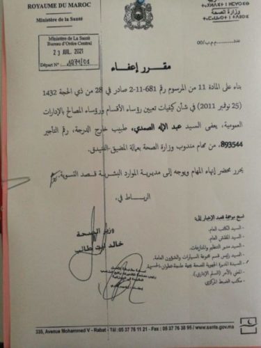 وزير الصحة خالد ايت الطالب أعفى المندوب الإقليمي للصحة بعمالة المضيق الفنيدق، عبد الإله الصمدي وذلك بعد الوقوف على مجموعة من الاختلالات.