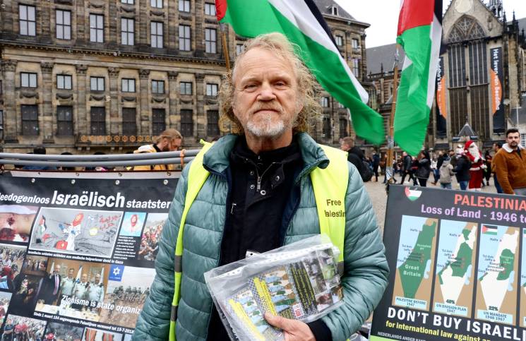 وقال الناشط الهولندي إنه نظم حتى اليوم أكثر من 500 مظاهرة في أمستردام، ويعمل على توزيع منشورات عن الاحتلال وتطالب بمقاطعة إسرائيل.