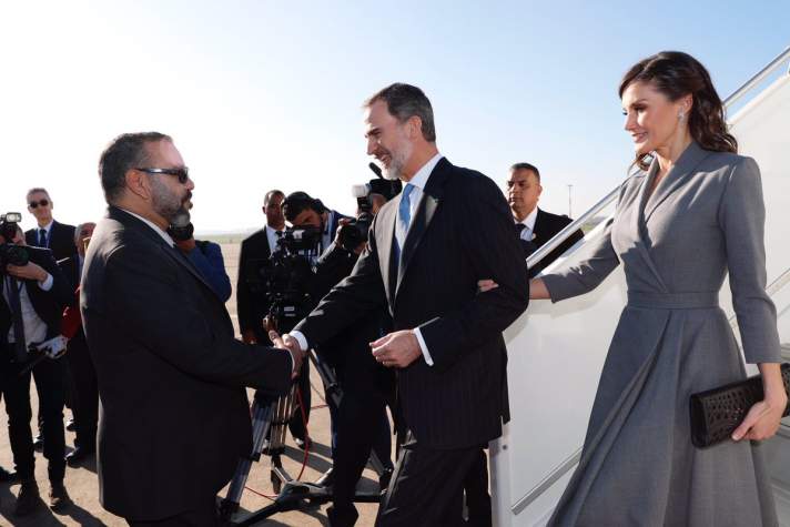 ولدى وصولهما إلى مطار الرباط -سلا، وجد صاحب الجلالة الملك “ضون” فيليبي السادس والملكة “ضونا” ليتيثيا في استقبالهما صاحب الجلالة الملك محمد السادس، مرفوقا بصاحب السمو الملكي ولي العهد الأمير مولاي الحسن، وصاحب السمو الملكي الأمير مولاي رشيد، وصاحبات السمو الملكي الأميرات للا خديجة وللا مريم وللا أسماء وللا حسناء وللا أم كلثوم.