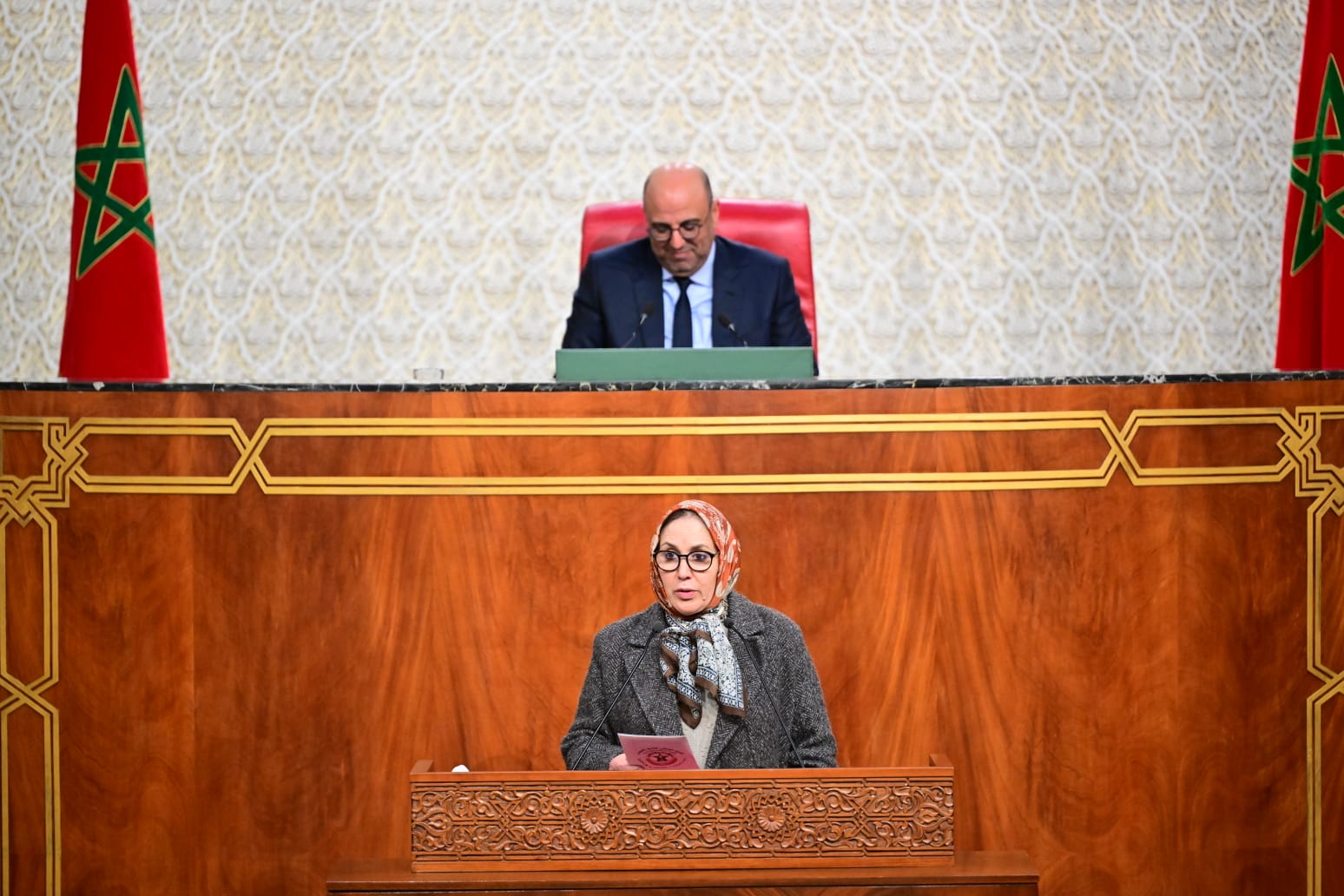 مداخلة المستشارة لبنى علوي عن الاتحاد الوطني للشغل بالمغرب خلال الجلسة الشهرية ليومه الثلاثاء