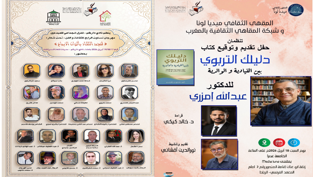 المقاهي الثقافية ونادي داركم ينظمان مهرجان تساوت بقلعة السراغنة وتوقيع كتاب "دليلك التربوي" بالرباط